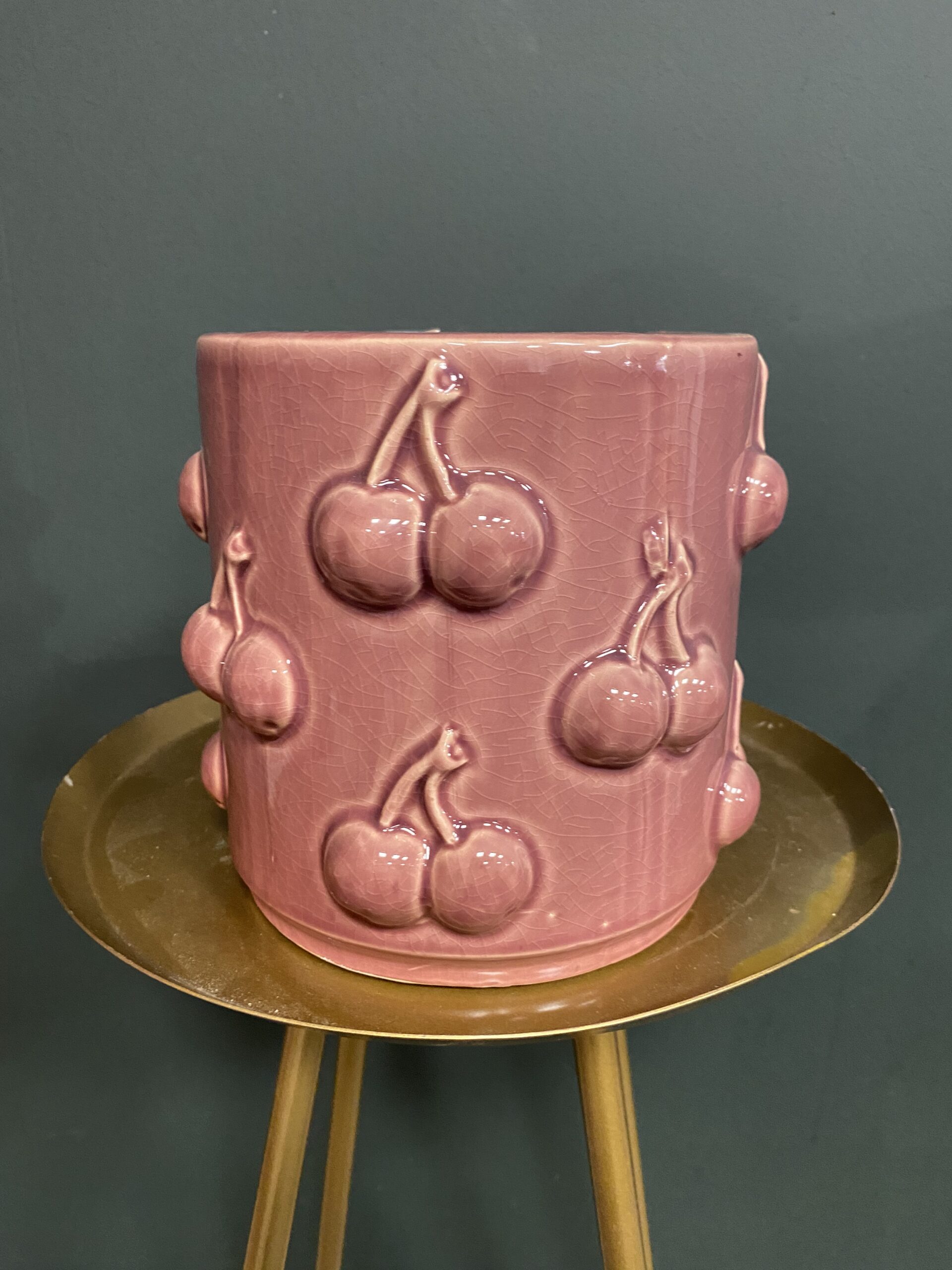 Deze speelse bloempot is een echte aanwinst voor een zomers interieur. het reliëf van kersen rondom geeft deze pot een vrolijke en unieke uitstraling.