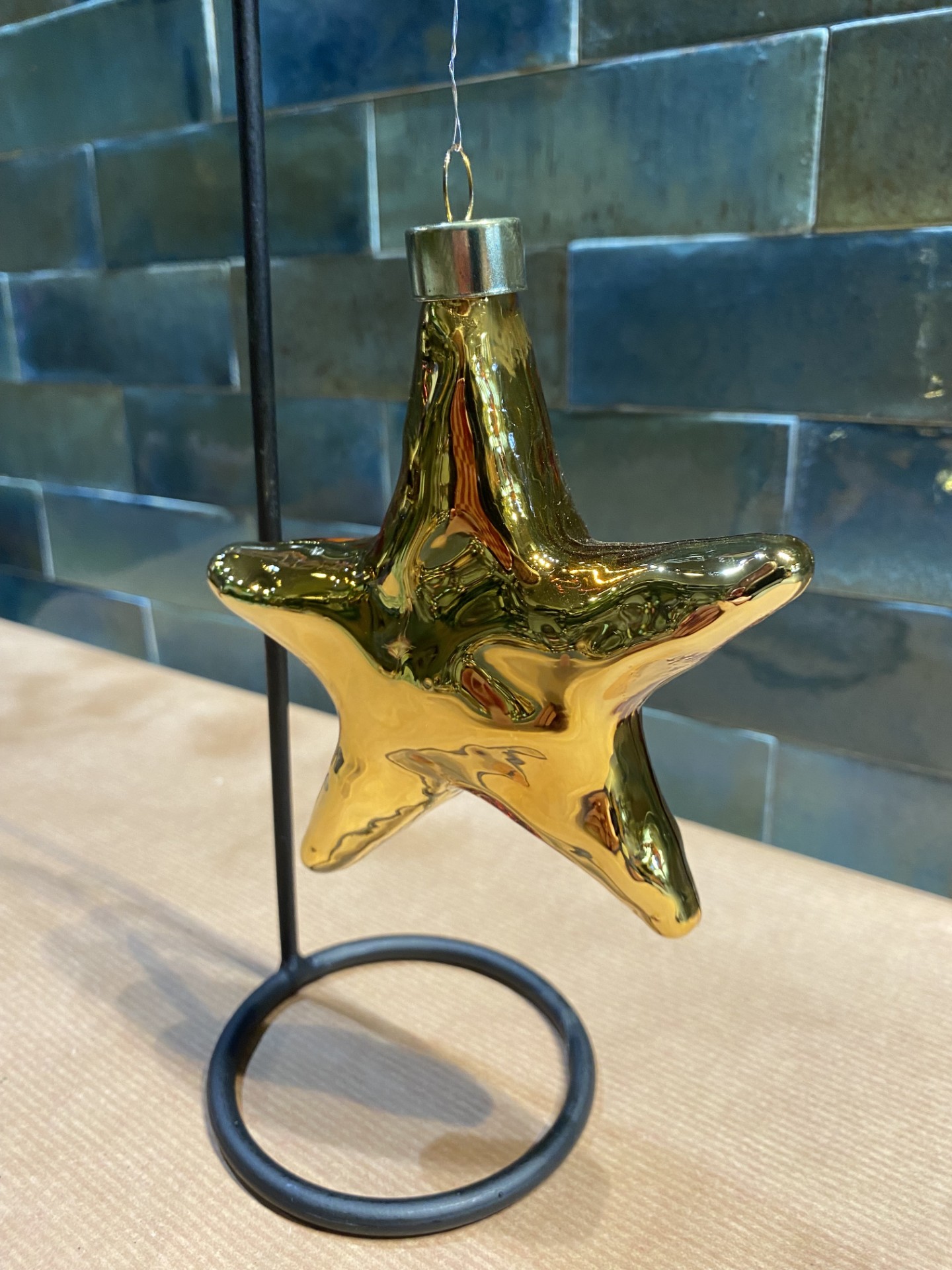 Deze sjieken kersthanger is in de vorm van een ster is met zijn gouden kleur de eyecatcher voor in jou boom. Deze kersthanger is gemaakt door PTMD.