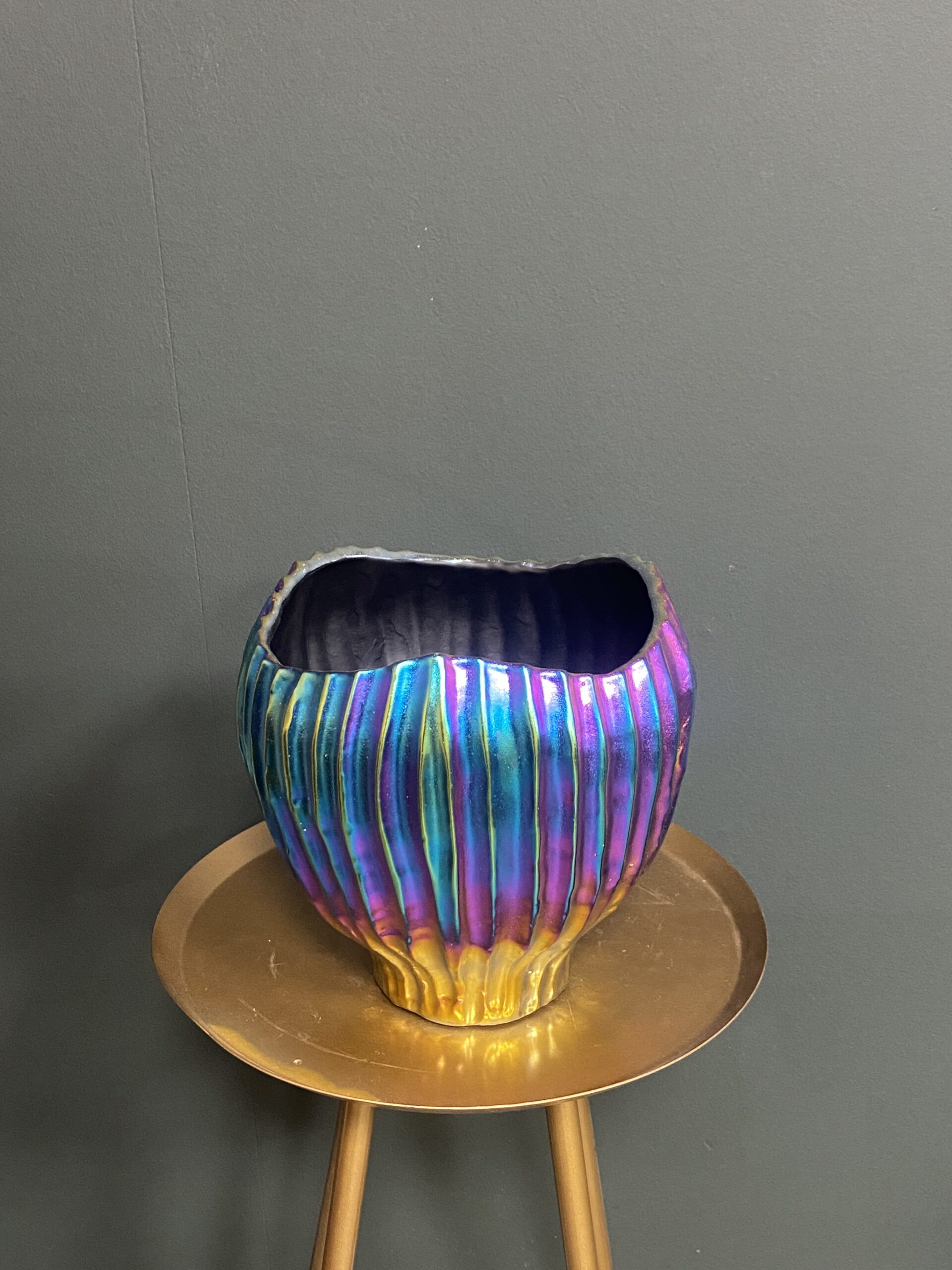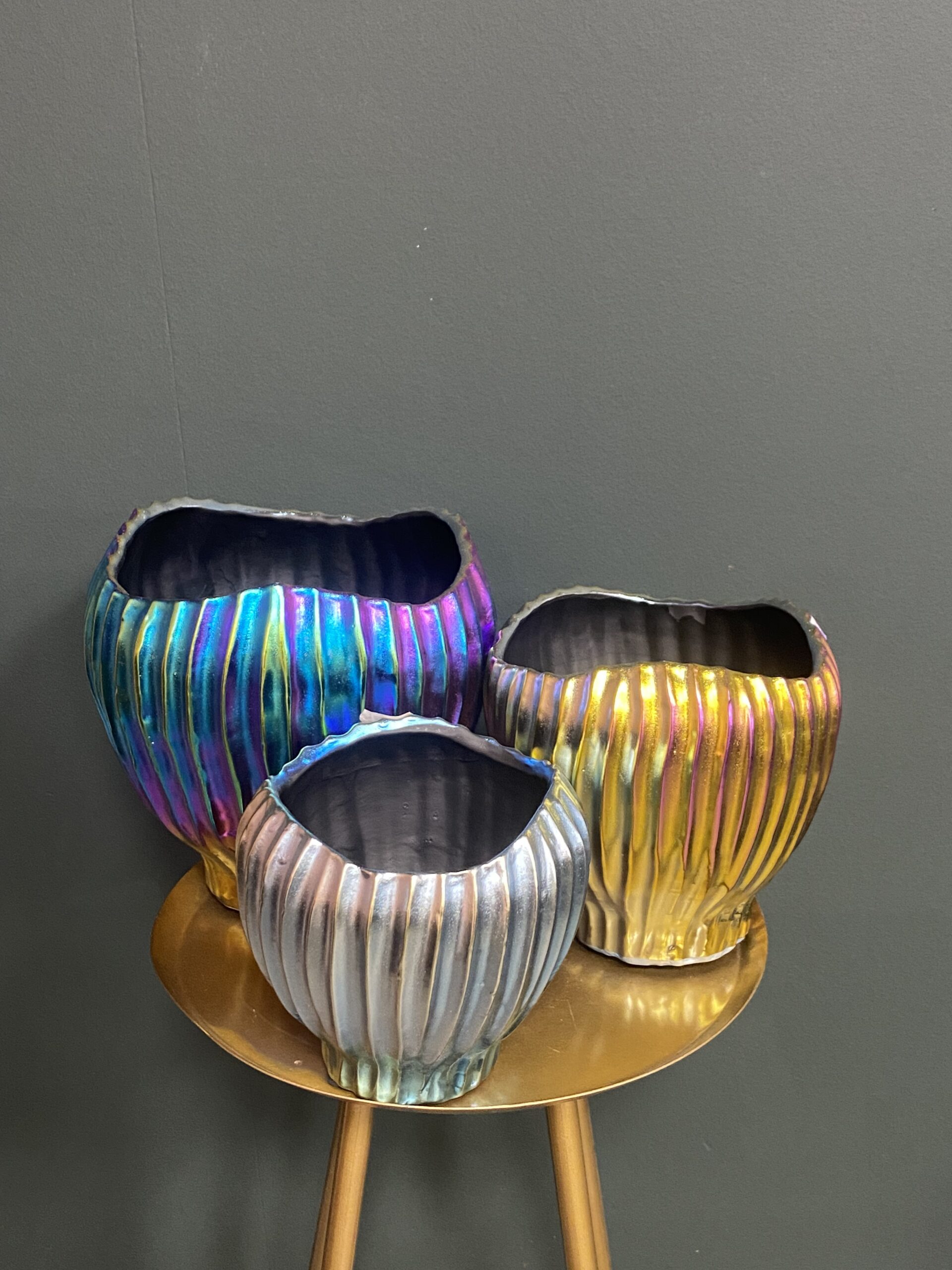 Deze bloempotten hebben een holografische afwerking waardoor de kleur steeds veranderd. Elke bloempot is een echte eyecatcher.