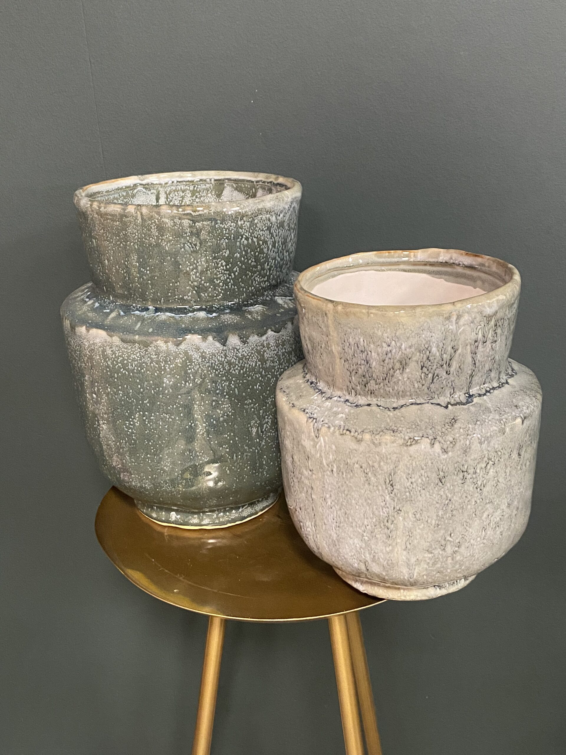 Pot in steen blauw of Iron bleu kleur, hand gemaakt waardoor elke pot een unieke kleur heeft.