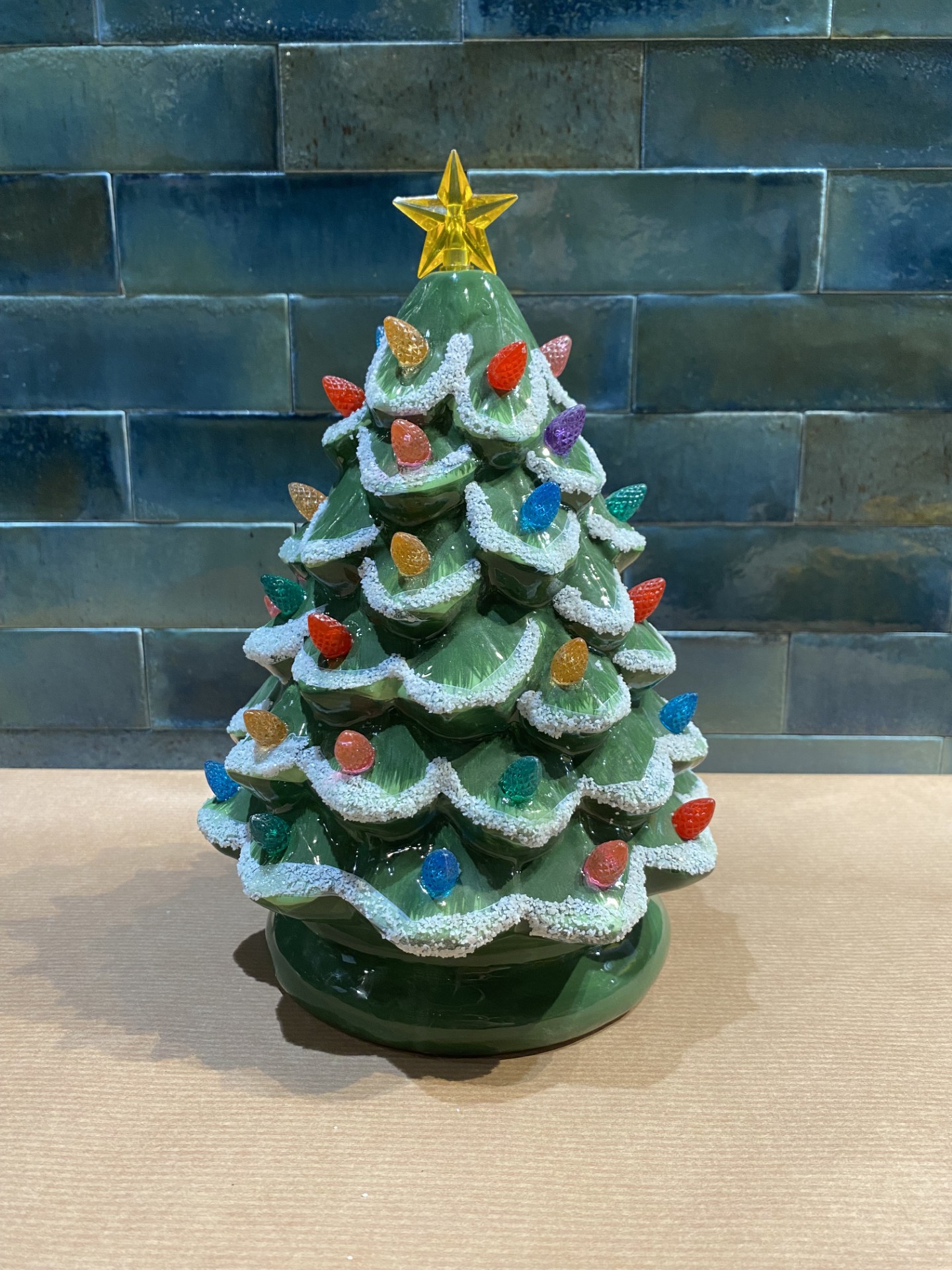 Deze kerstboom heeft vrolijke uitstraling door de mooie kleuren. De ster bovenop geeft licht en werkt doormiddel van batterijen. En de kerstboom is 25cm hoog.