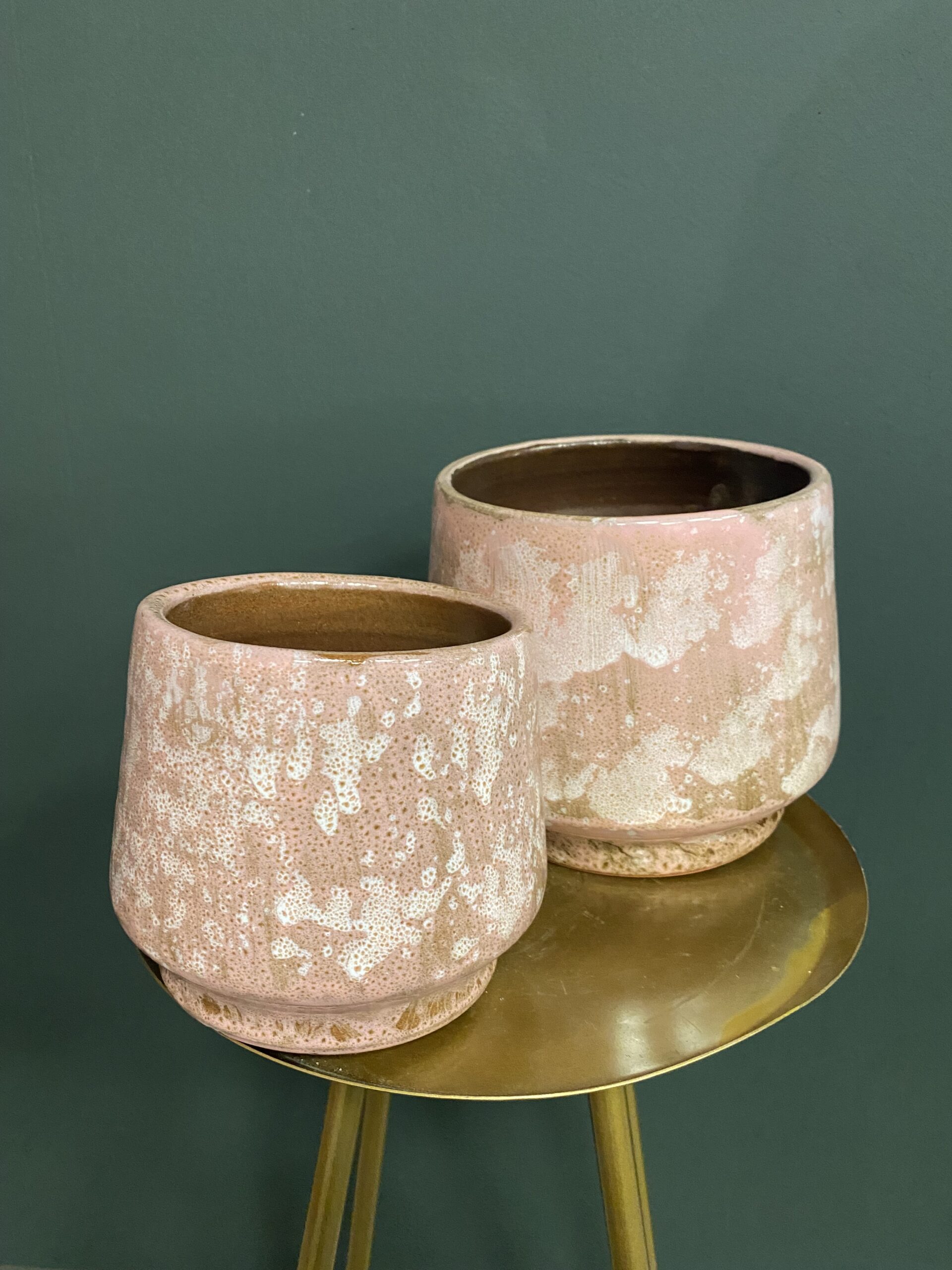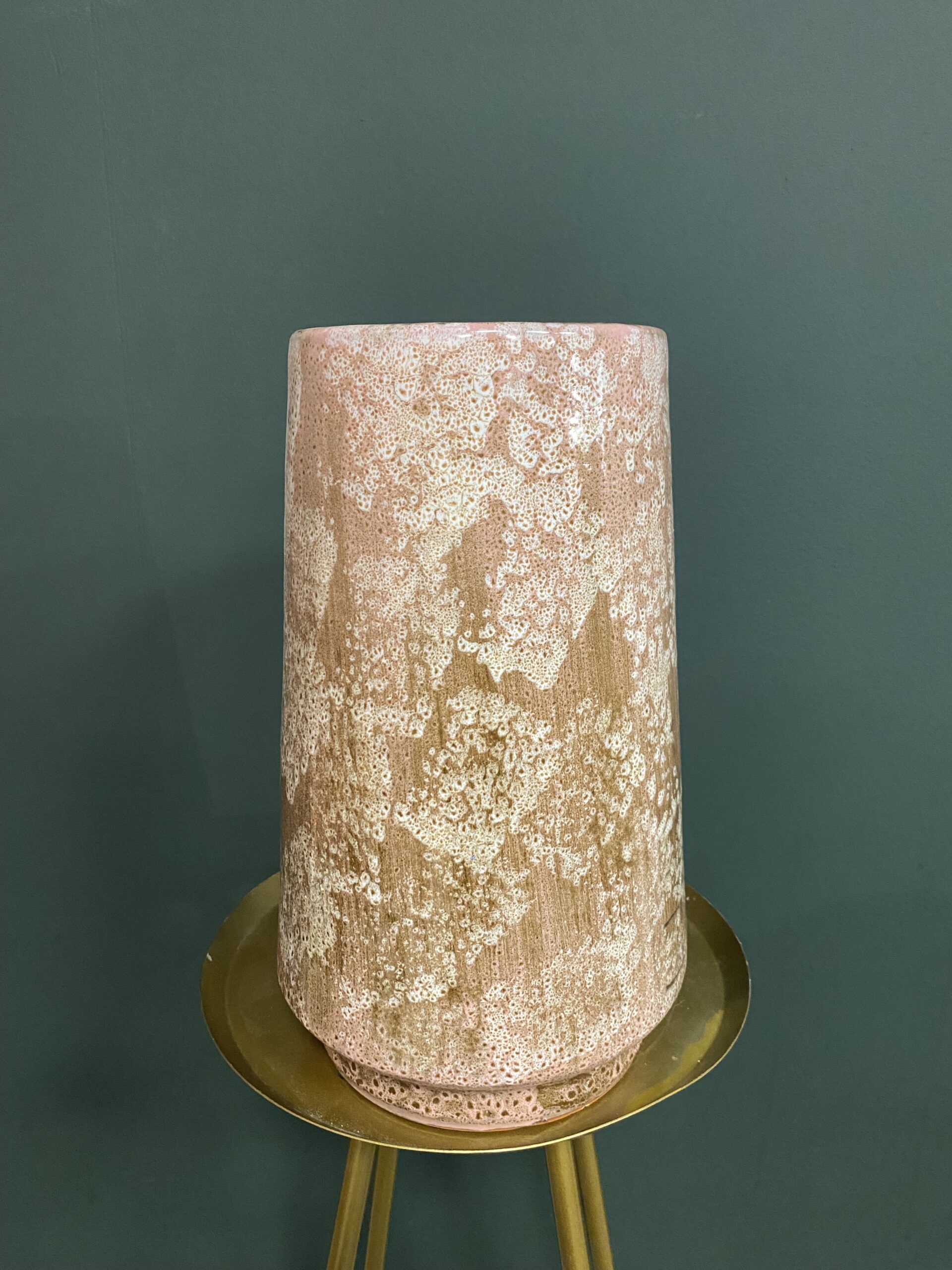 Stijlvolle vaas met zacht roze en speels gespikkeld glazuur. De kleurverschillen geven de vaas een ambachtelijk karakter.
